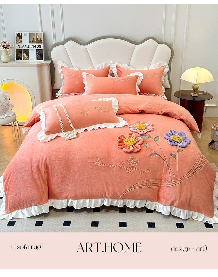 当前位置:苏米娜家纺SUMINA > 9斤高端韩版少女心法式公主风贴布绣花牛奶绒四件套小清新绒兔毛绒法莱绒床盖被套丝绒兔毛绒法莱绒床盖被套 锦上添花-宾利蓝