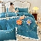 9斤高端韩版少女心法式公主风贴布绣花牛奶绒四件套小清新绒兔毛绒法莱绒床盖被套丝绒兔毛绒法莱绒床盖被套 锦上添花-宾利蓝