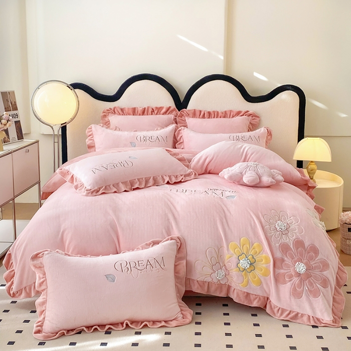 当前位置:苏米娜家纺SUMINA > 9斤高端韩版少女心法式公主风贴布绣花牛奶绒四件套小清新绒兔毛绒法莱绒床盖被套丝绒兔毛绒法莱绒床盖被套 潘多拉-樱花粉