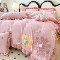 9斤高端韩版少女心法式公主风贴布绣花牛奶绒四件套小清新绒兔毛绒法莱绒床盖被套丝绒兔毛绒法莱绒床盖被套 潘多拉-樱花粉