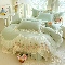 苏米娜2025秋冬新款230g法式公主风全消光牛奶绒床裙款四件套纯色蕾丝花边刺绣床盖款四件套欧若拉-新芽绿