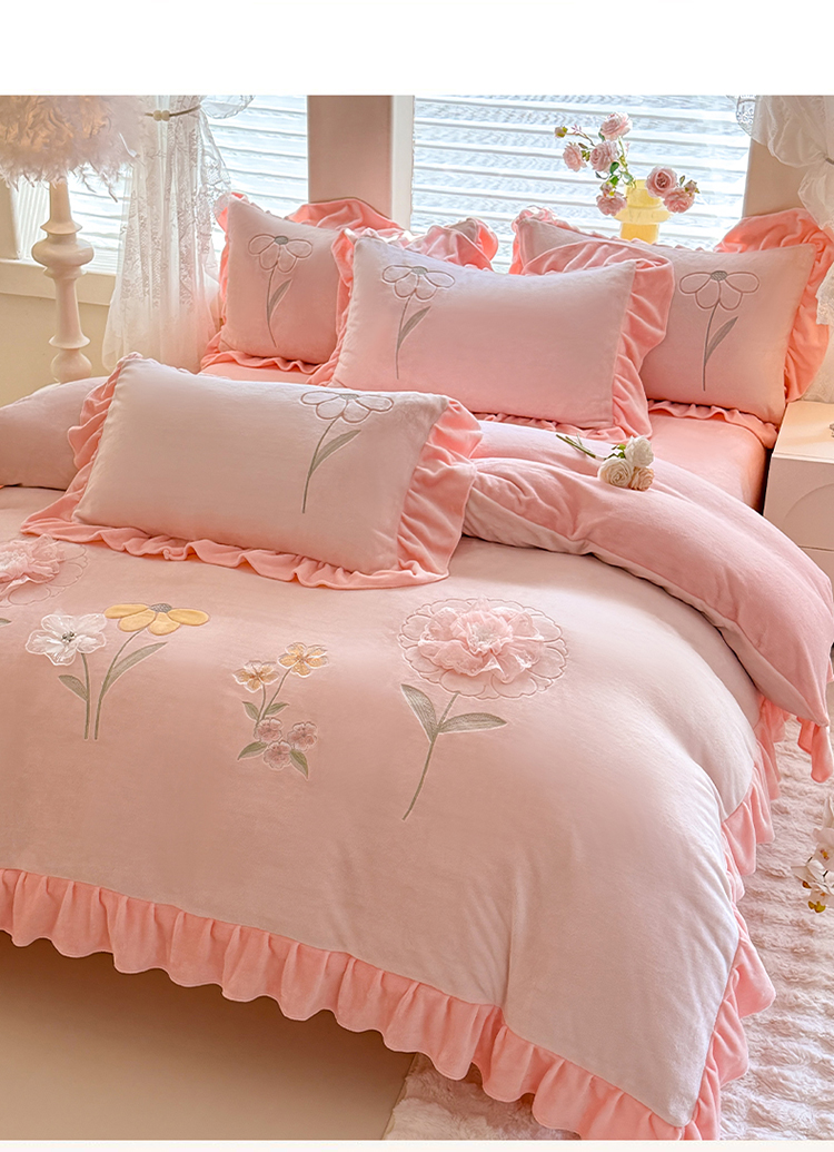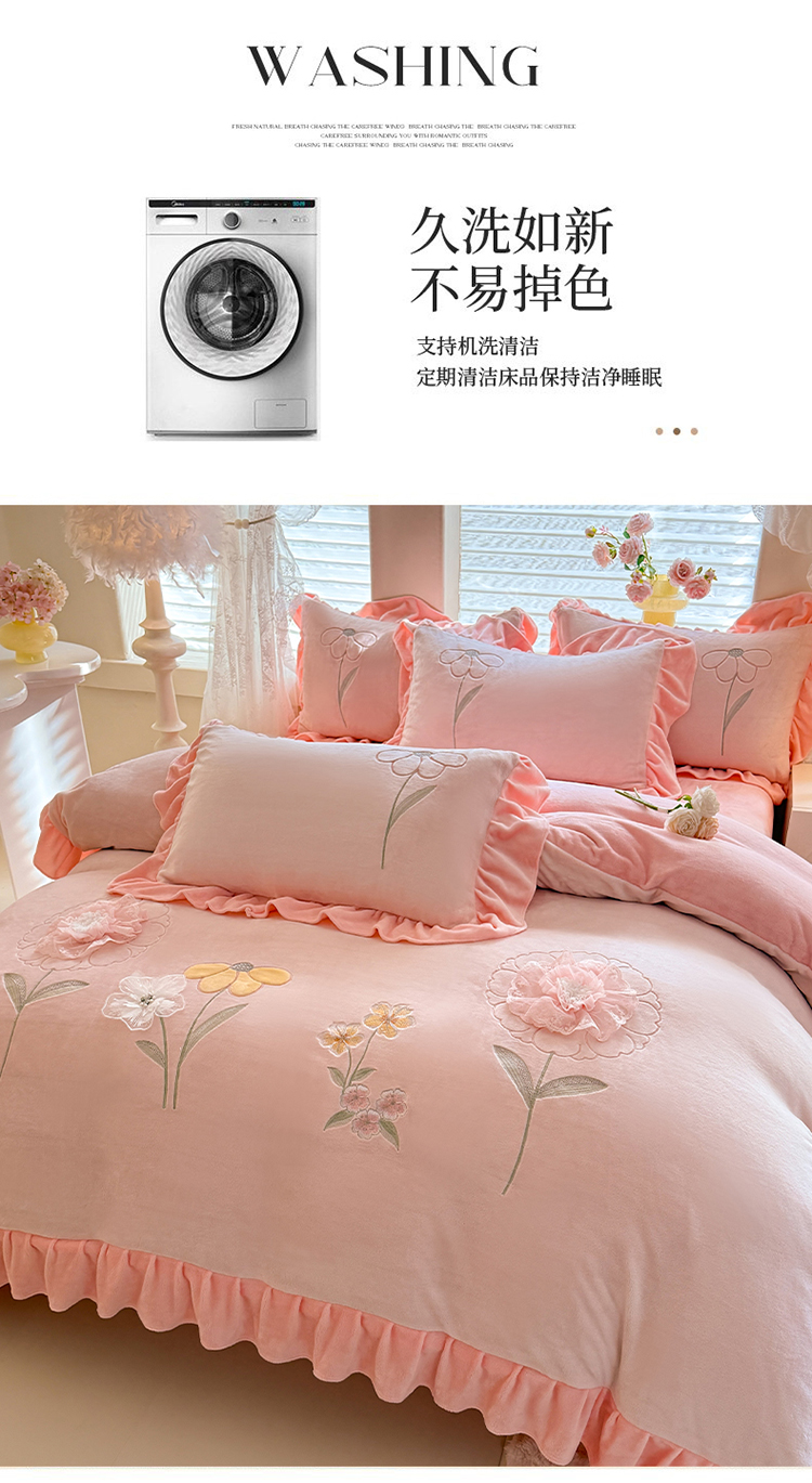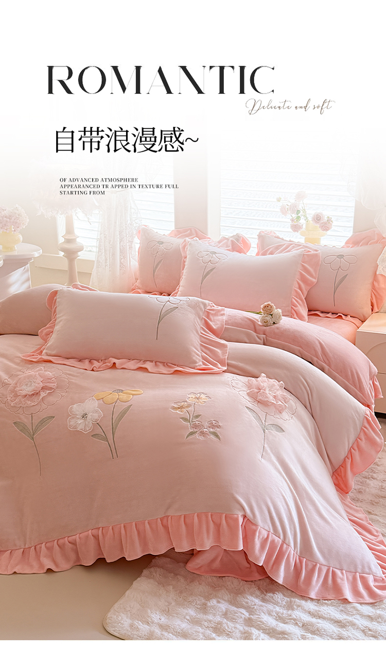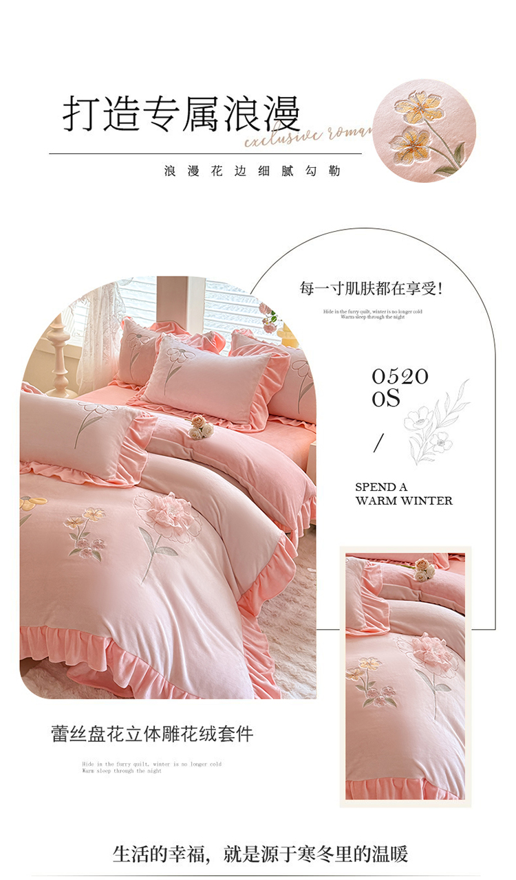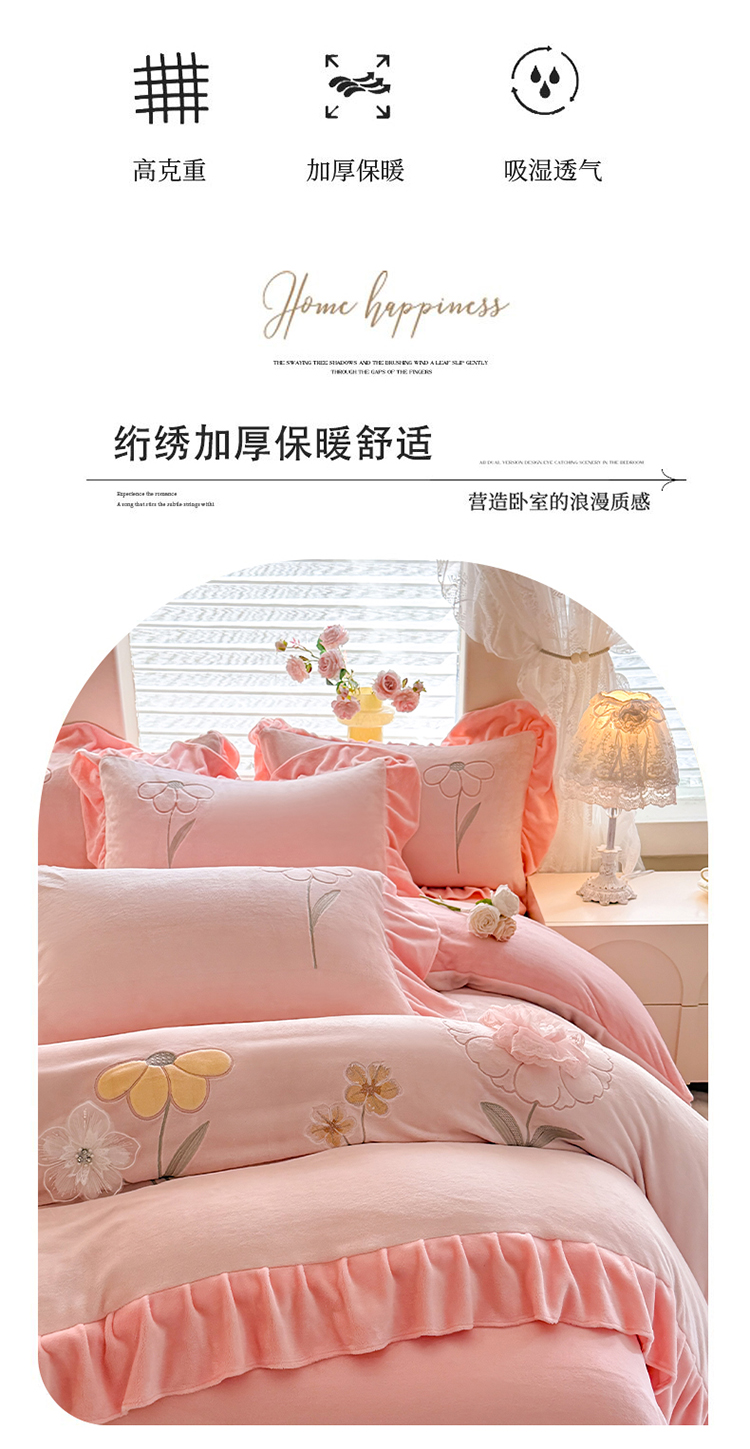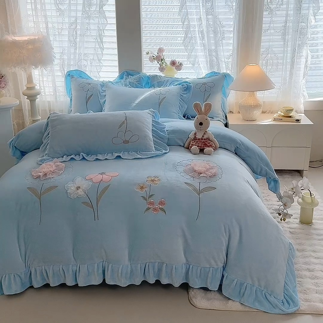 苏米娜家纺SUMINA 2025新款230g高克重韩版立体盘花牛奶蚕丝绒绣花四件套床裙款被套-洛丽塔系列 洛丽塔-婴儿蓝