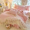 法式风水洗棉水溶花边被套床盖款四件套-法派甜心