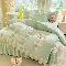 苏米娜2025秋冬新款11斤230g全消光牛奶绒夹棉床盖款四件套纯色蕾丝花边刺绣床裙款床盖--米兰系列 米兰-嫩芽绿