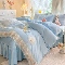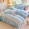 苏米娜2025秋冬新款11斤230g全消光牛奶绒夹棉床盖款四件套纯色蕾丝花边刺绣床裙款床盖--米兰系列 米兰-婴儿蓝