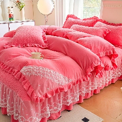 苏米娜纯色花边230g全消光牛奶绒床裙款四件套--甜心系列