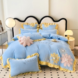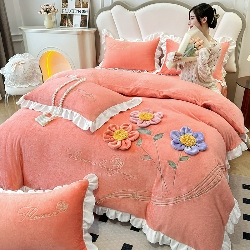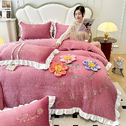 230g高克重韩版立体盘花牛奶绒绣花四件套