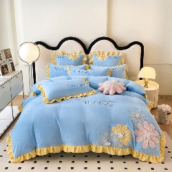9.5斤230g全消光法式公主风牛奶绒绣花四件套