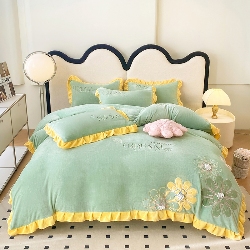 9斤高端韩版少女心法式公主风贴布绣花牛奶绒四件套小清新绒兔毛绒法莱绒床盖被套丝绒兔毛绒法莱绒床盖被套 锦上添花-新芽绿