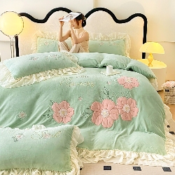 230g高克重韩版立体盘花牛奶绒绣花四件套