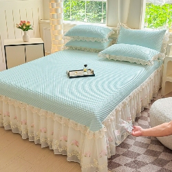 苏米娜2025甄选A类凉豆豆纯色系蕾丝花边床裙款床单款床盖床单凉席三件套蕾丝床盖款凉席三件套 唯爱-天空蓝