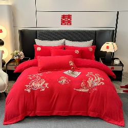 苏米娜2025秋冬新款高克重9斤全消光牛奶绒大红结婚婚庆四件套大红色龙凤刺绣婴儿绒四件套(含精美手提袋) 龙凤吉祥