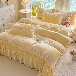 苏米娜纯色花边230g全消光牛奶绒床裙款四件套--甜心系列