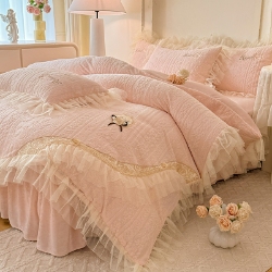 苏米娜纯色花边230g全消光牛奶绒床裙款四件套--甜心系列