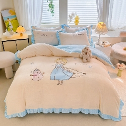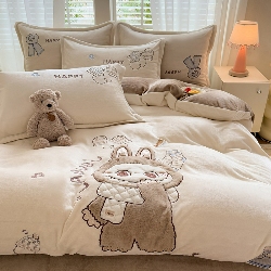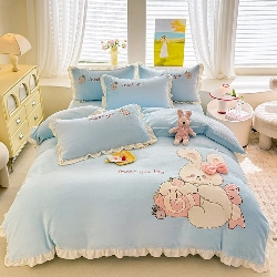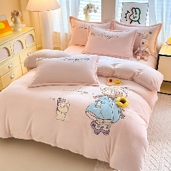 230g全消光牛奶绒卡通兔毛贴布绣花床盖款四件套-卡通风系列