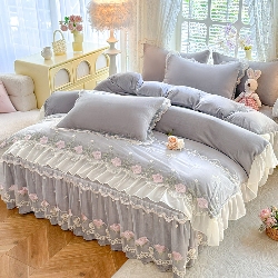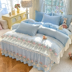 当前位置:苏米娜家纺SUMINA > 产品中心 > 依恋-苏米娜230g绣花花边床裙款全消光牛奶绒四件套