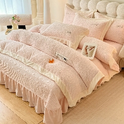 苏米娜纯色花边230g全消光牛奶绒床裙款四件套--甜心系列