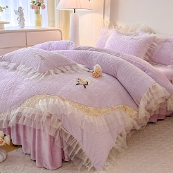 苏米娜纯色花边230g全消光牛奶绒床裙款四件套--甜心系列